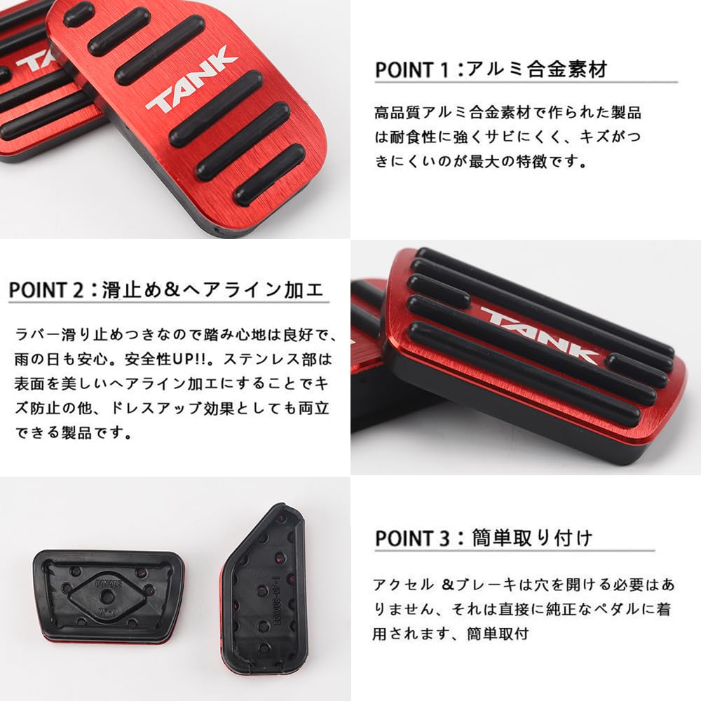 BOYOUS【最新型販売】トヨタ タンク M900A/M910A 専用設計 高品質 アルミ ペダル 工具不要 ブレーキ アクセル カバー 防キズ 防汚れ 滑り止めゴム付 2点セット(レッド)