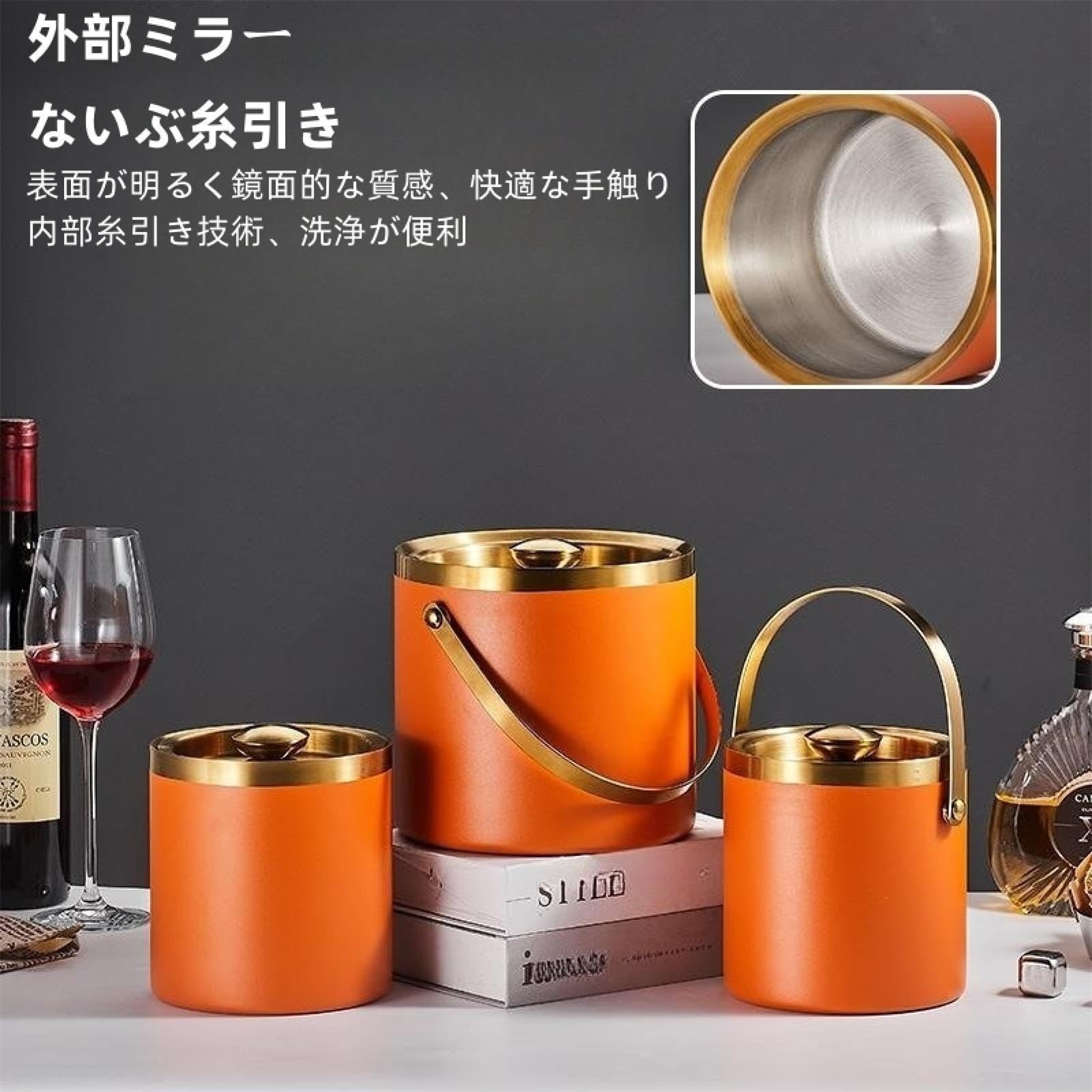 アイスペール 溶けない 二重構造 全ステンレス構造 アイスバケット ステンレス 氷入れ 真空断熱 ハンドルとフタ付 保冷用 2L 3L 大容量 プロ仕様 家庭用 業務用 (3L B)