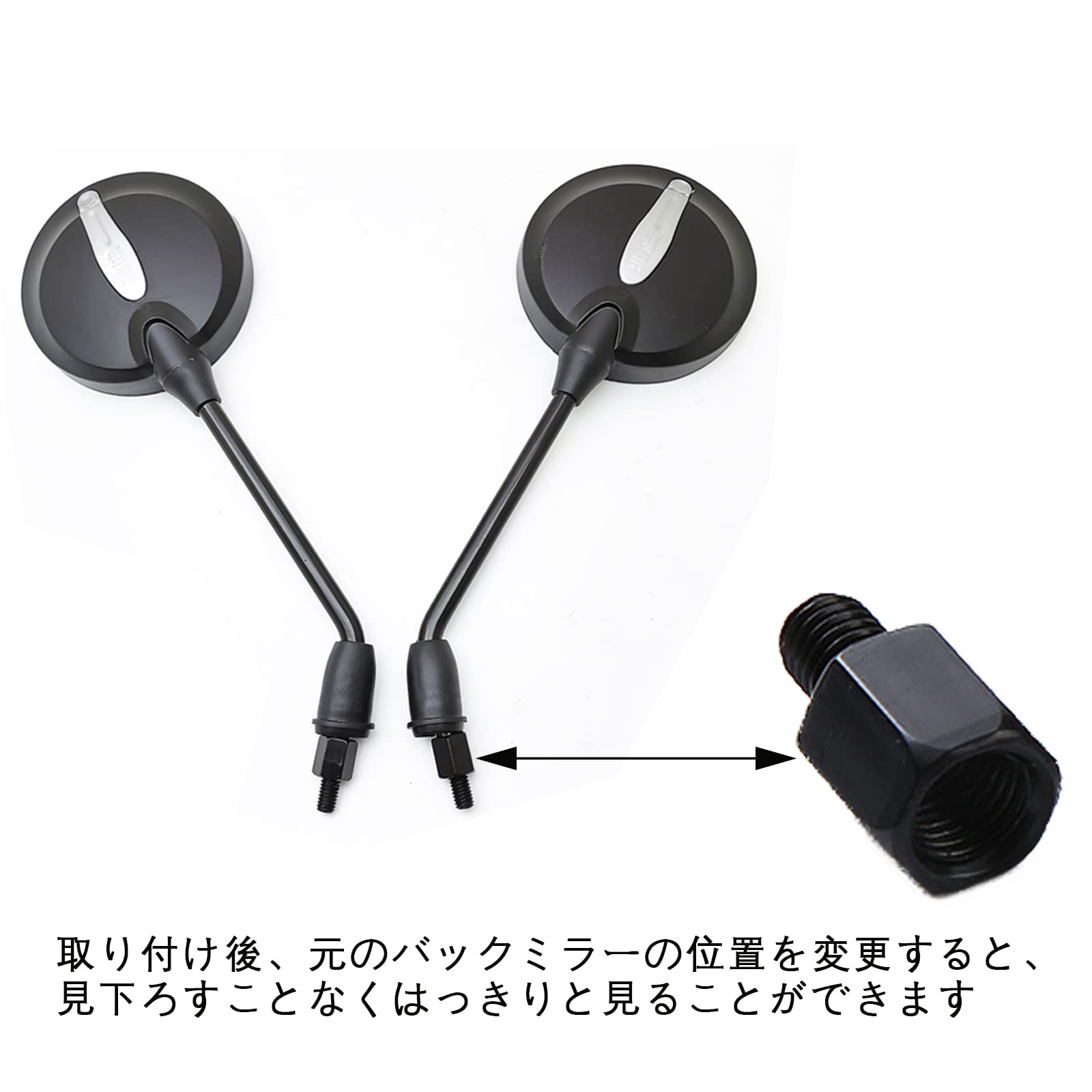 インストールが簡単: 高品質のサイドミラーのアダプターはサイドミラーの設置位置を10―15ミリメートル増加することができます。これらのアダプターは、10mm の時計回りのネジでミラーのマウント ポイントにねじ込み、10mm のミラーを取り付けることができます。