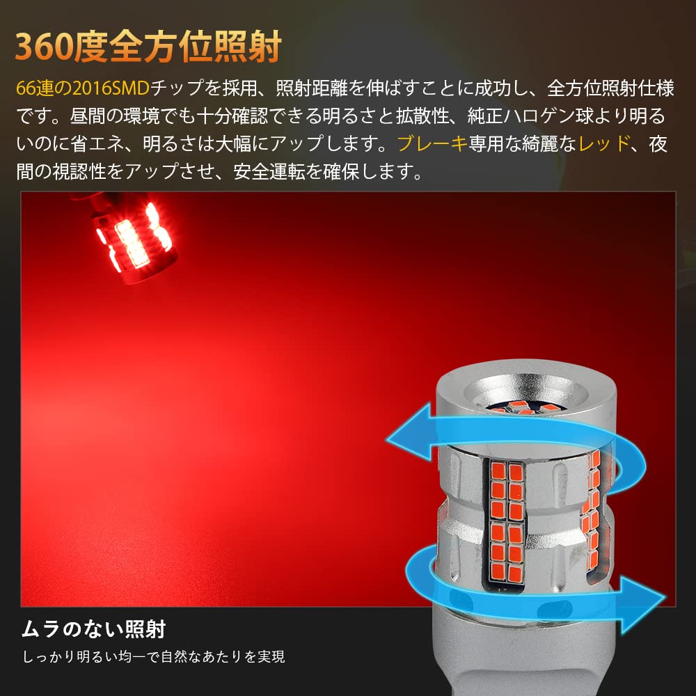 【高輝度、360度発光】高品質の2016SMDチップ66連を搭載、全体が均一に発光し、360度全方位に照射できます。日中でしっかりと視認できる明るさ、夜間や雨天などの悪天候には視界が悪くなる時の危険回避に効果を発揮し、後部不慮の事故などを防ぎます。明るくて鮮やかな発光、より快適でよリ安全な走行をサポートします。