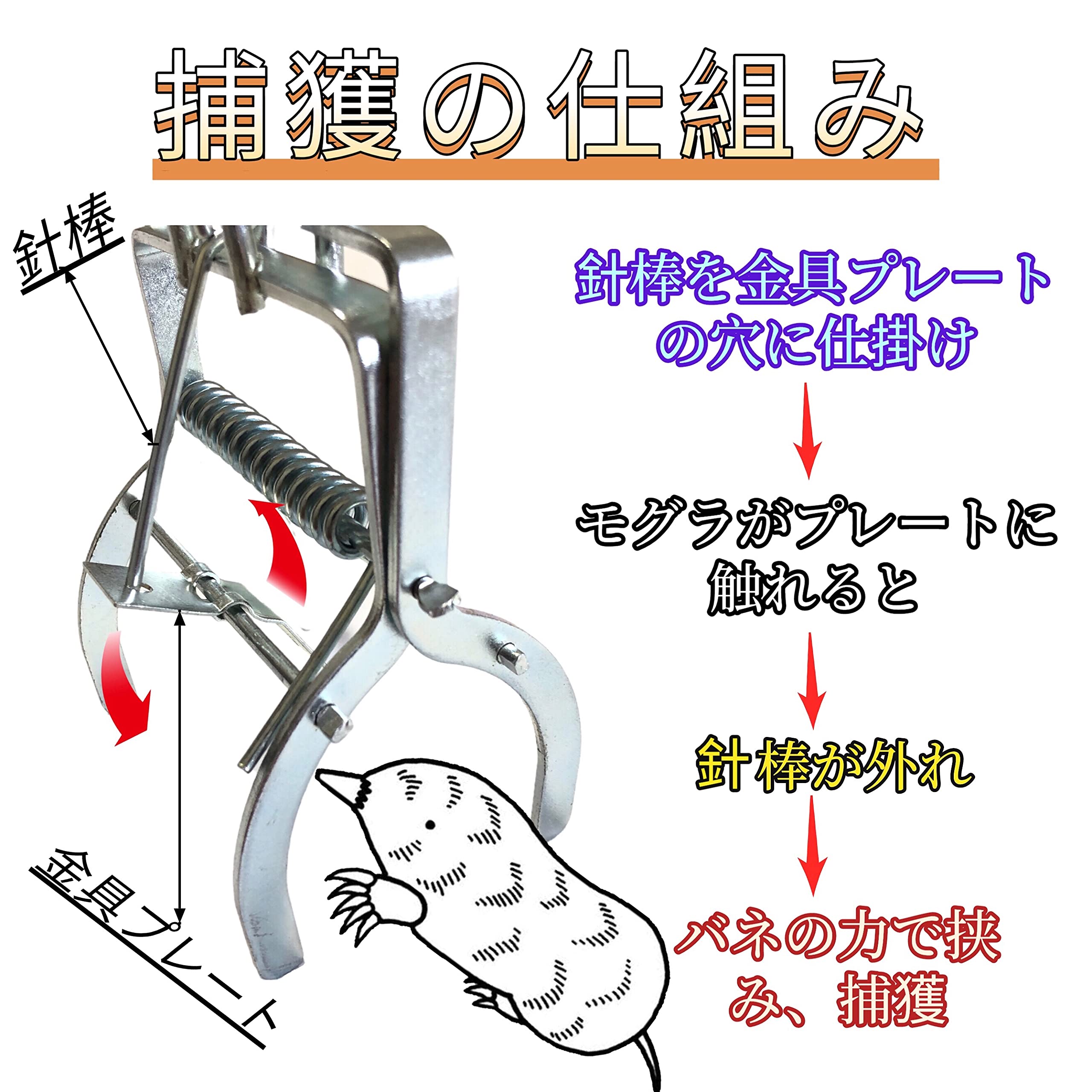 ● モグラの通り道やトンネルの出入り口などに仕掛けるトラップです。