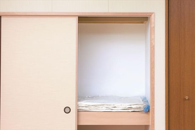【約1/2のサイズに圧縮でき、さらに2つ折り可能】かさばる布団を約半分のサイズに圧縮し、さらに圧縮後は2つ折りして、効率的に収納できます。