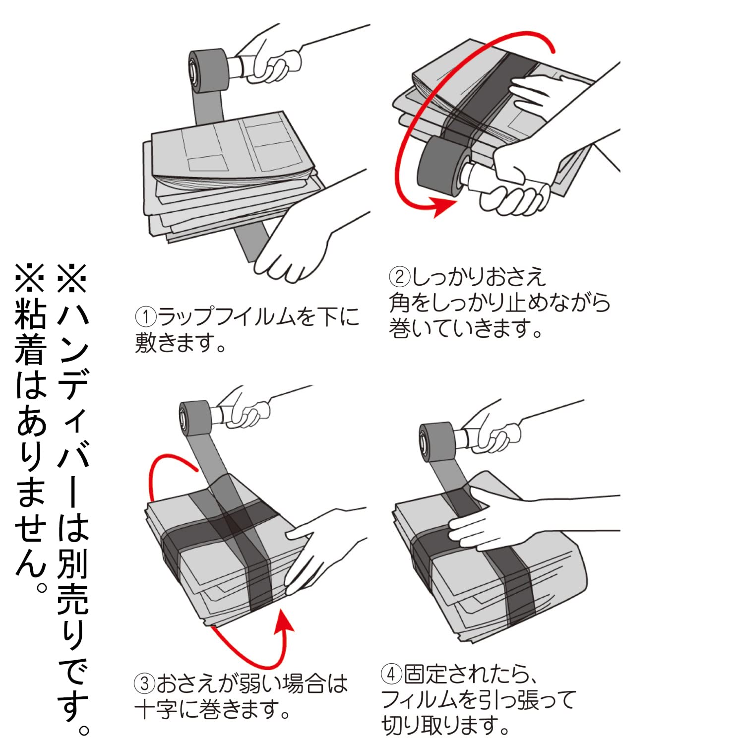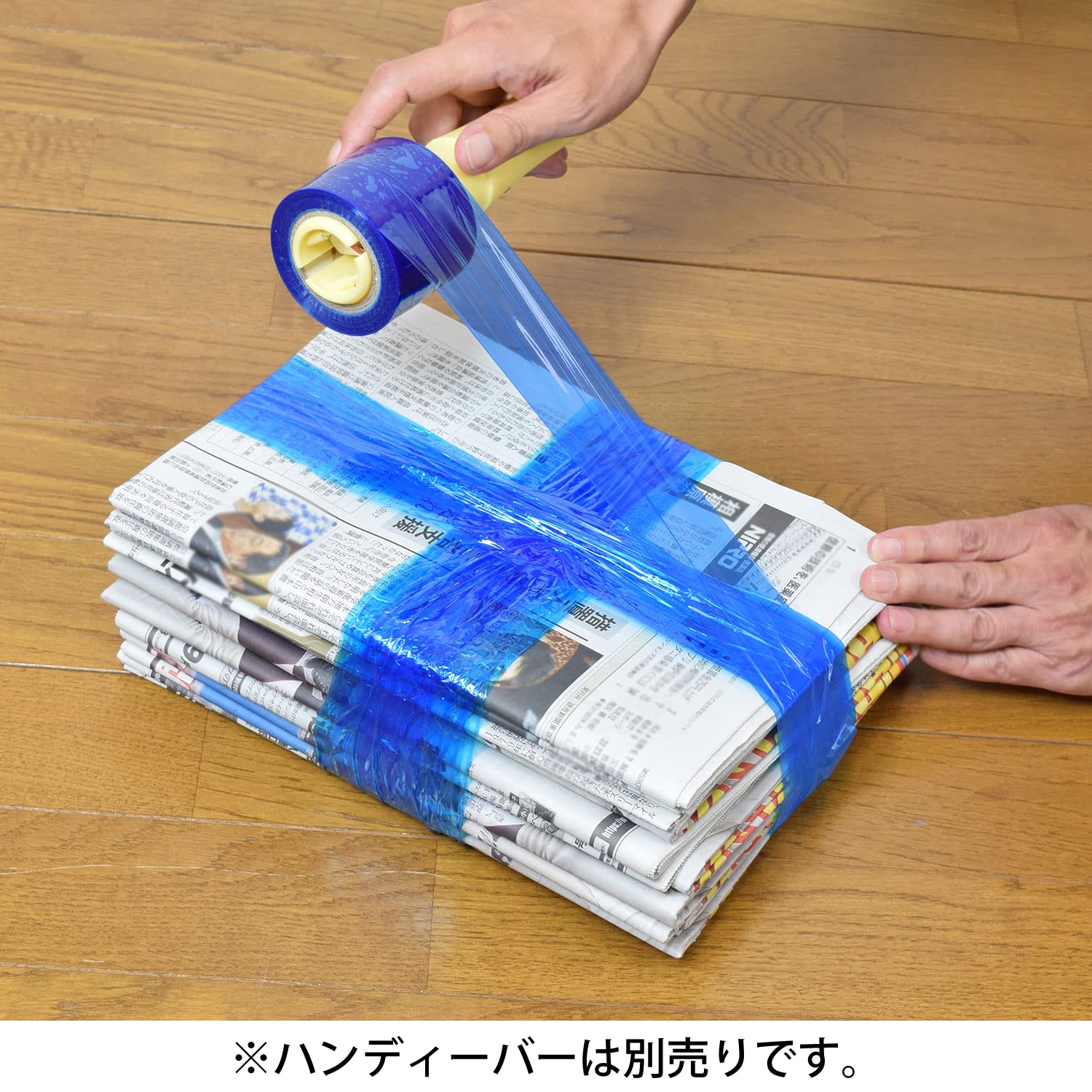 資源ゴミや不燃ゴミの結束に便利な「くるくるラップフィルム」の交換用ラップフィルム2巻入り<br>不要になった蛍光灯、新聞・雑誌、段ボール、傘、ビン、ペットボトルなど スルッと巻いて一発結束!