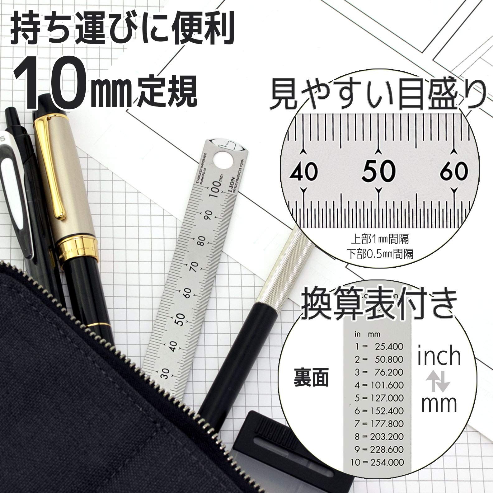【新着商品】ライオン事務器 ステンレス定規 100mm PS-10