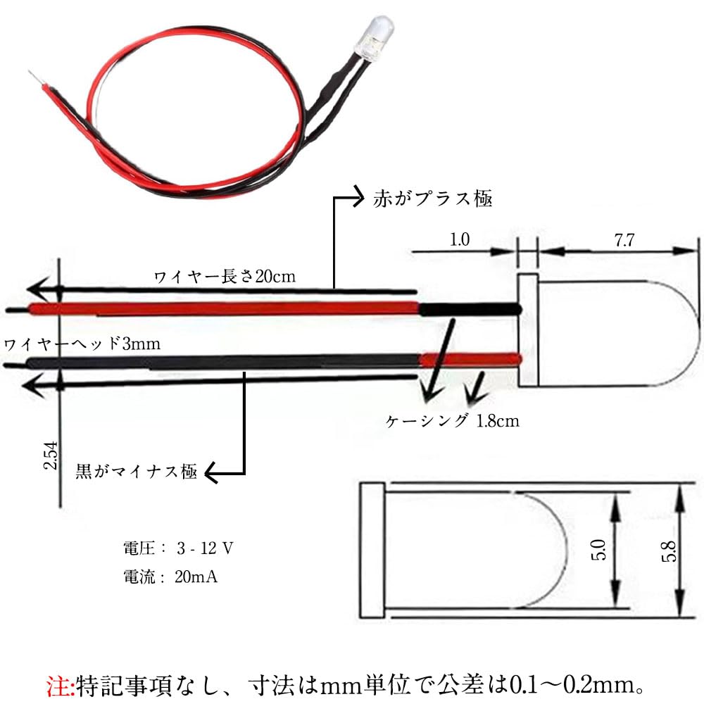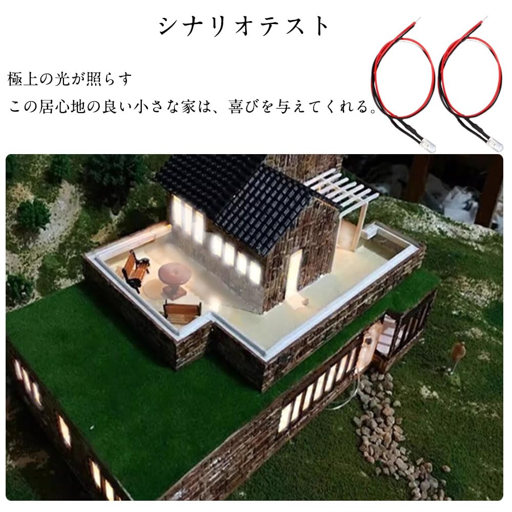 ジオラマ電飾に チップ LED 5mm 20本入り 小型 電球 配線付き 3-12V用 抵抗付属汎用 DIY 電車模型 建物模型 カラーライト 広告ライト デジタル製品など(白色光)