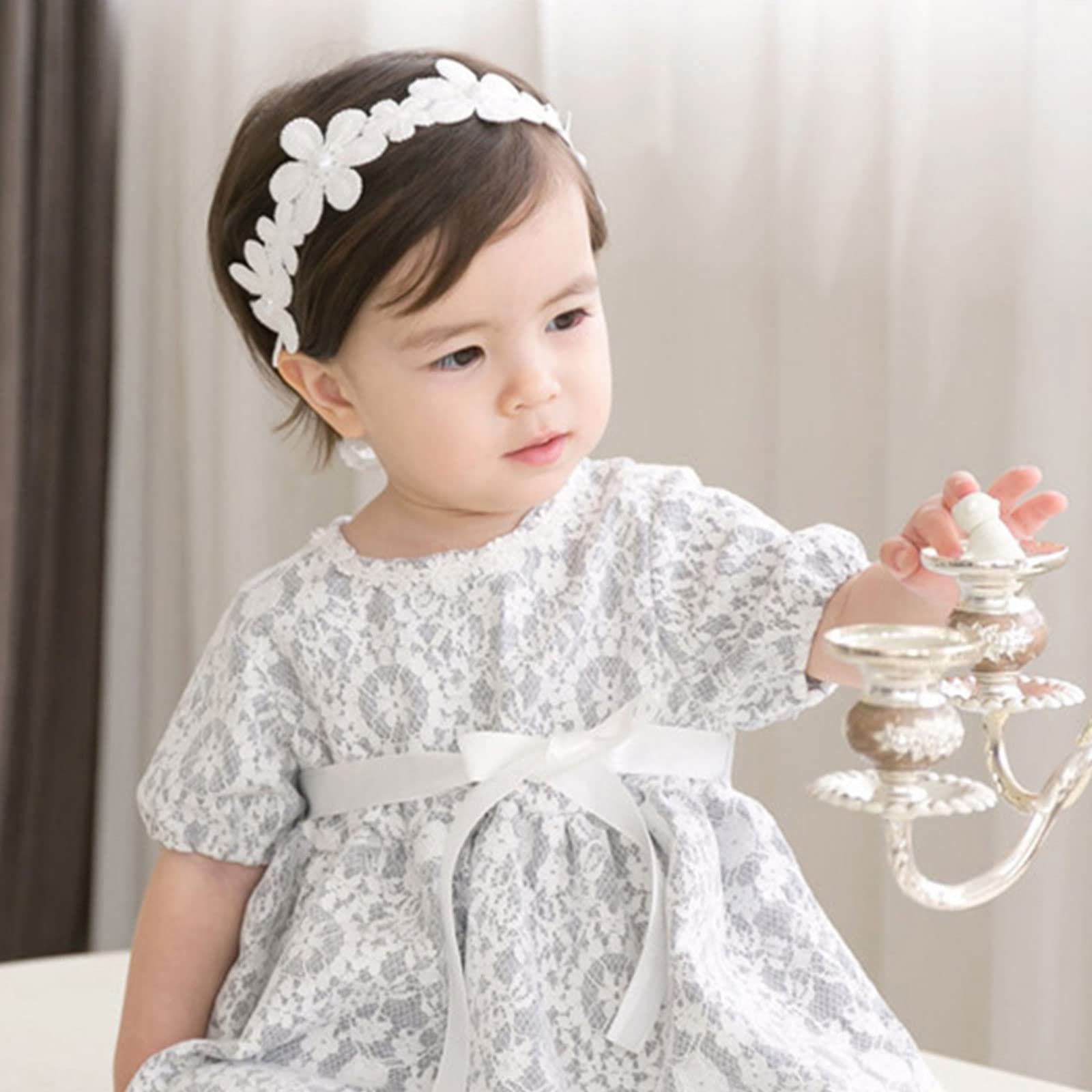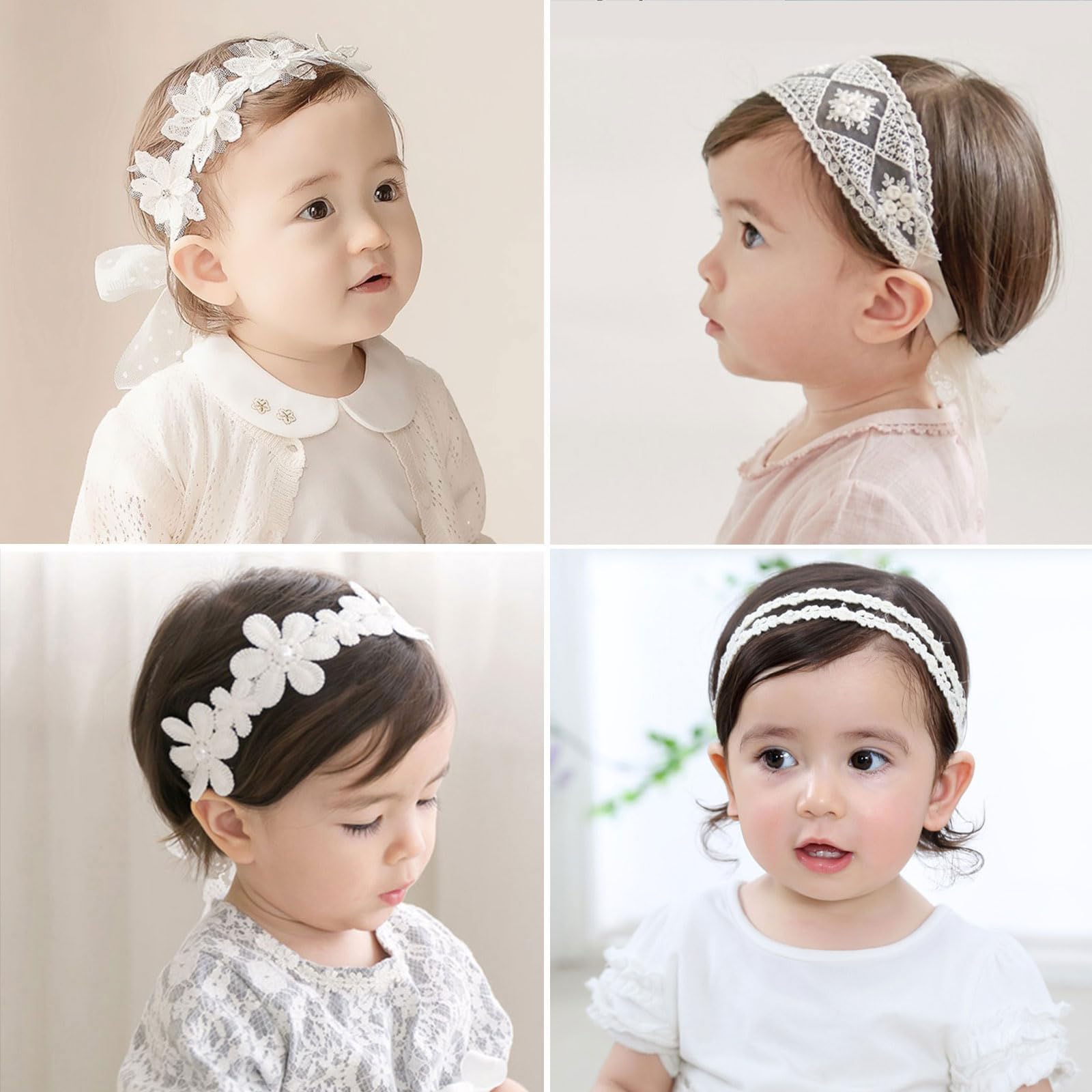 【素材】ヘアバンドは、高品質の綿、ポリエステル、レース生地で作られています。 着け心地がよく、柔らかく、通気性も良いので、赤ちゃんが長時間着けていても不快に感じることはありません。