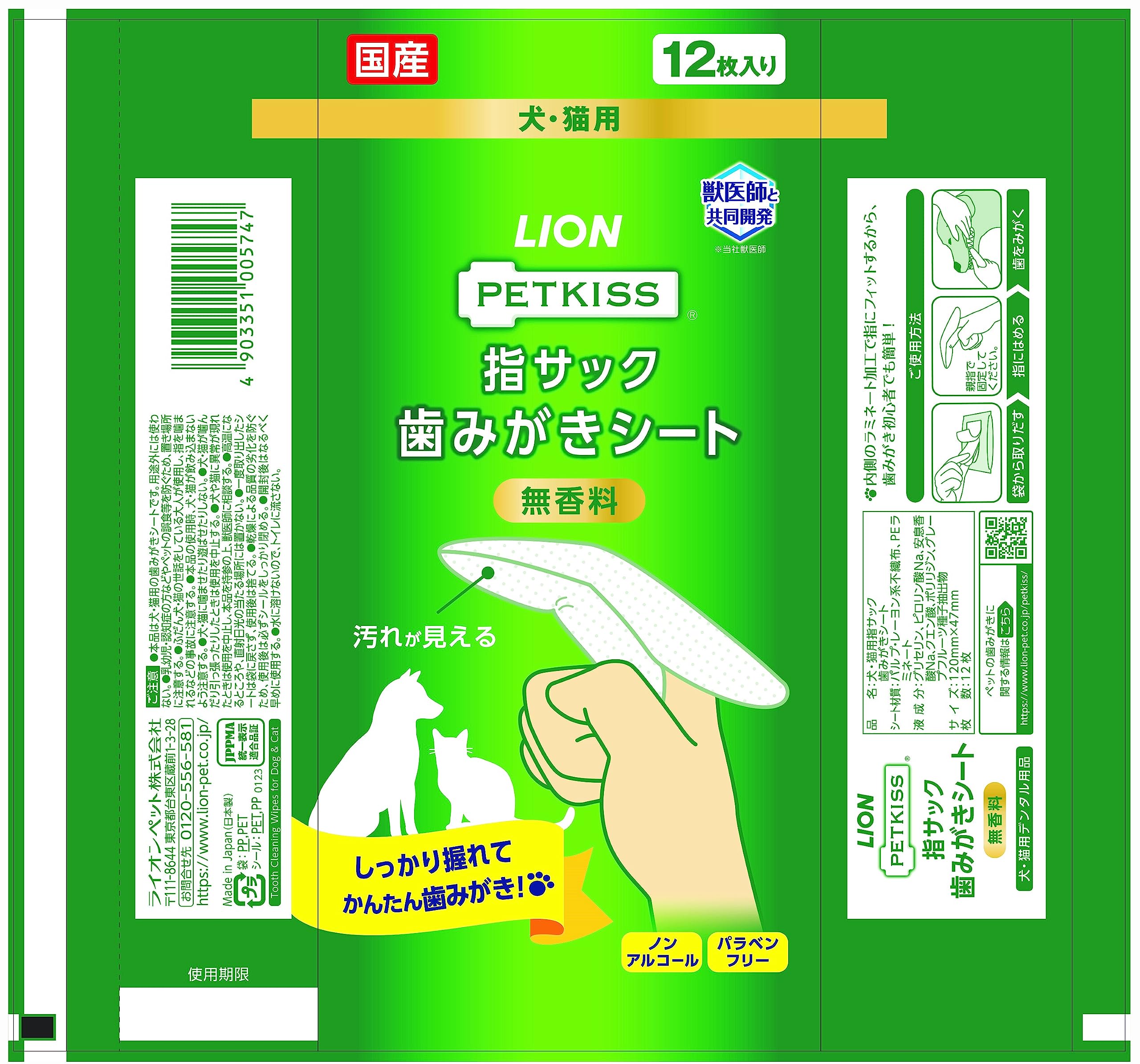 【新春セール】ライオン ペットキッス PETKISS 指サック歯みがきシート 無香料 3個パック まとめ買い LIONPET