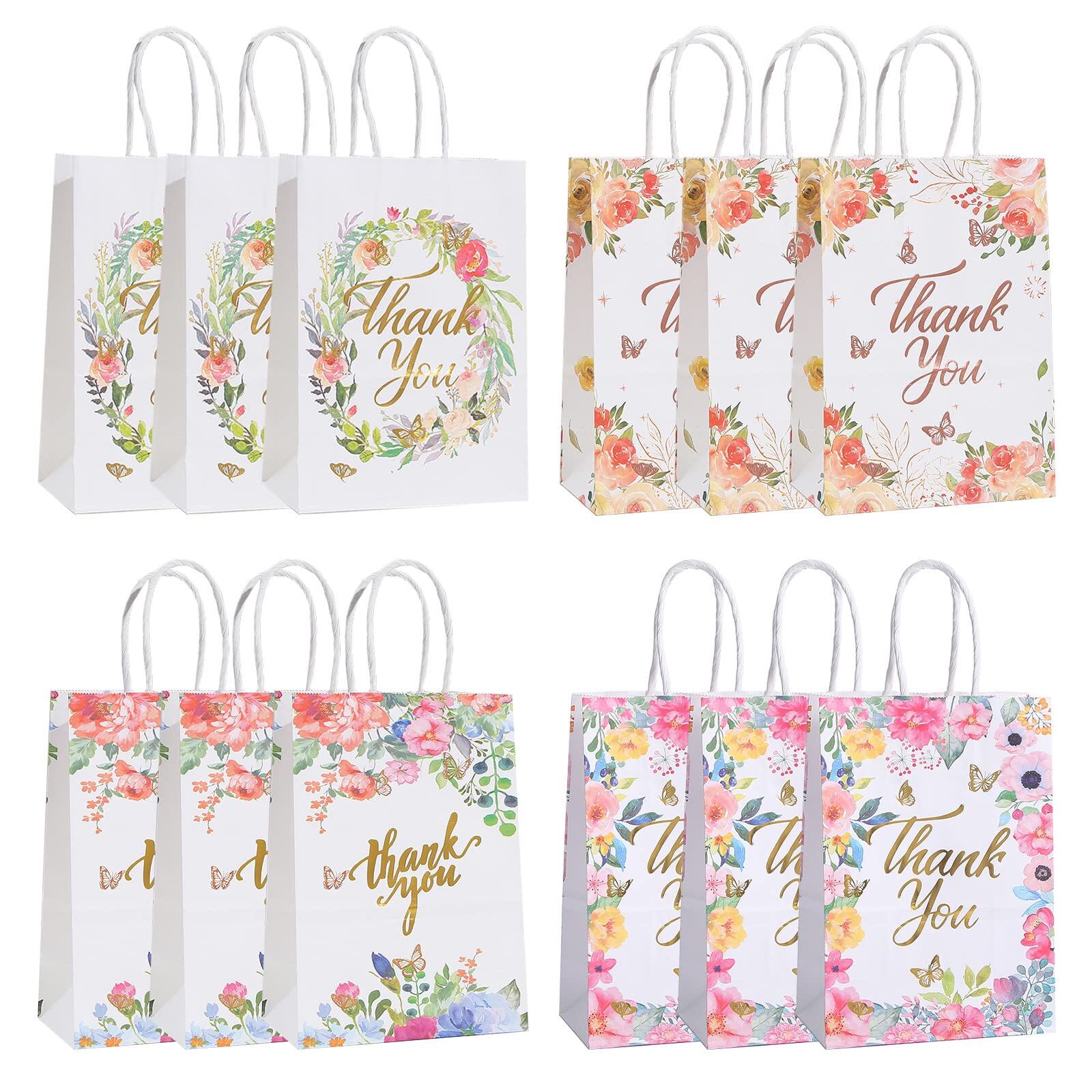 【在庫セール】BTtime 紙袋 12枚入 4種類手提げ袋 ラッピング袋 プレゼント袋 ギフト 袋 プレゼント 包装 小 厚手 丸紐 おしゃれ 可愛い バレンタイン 卒業 感謝 結婚祝い 21x15x8cm