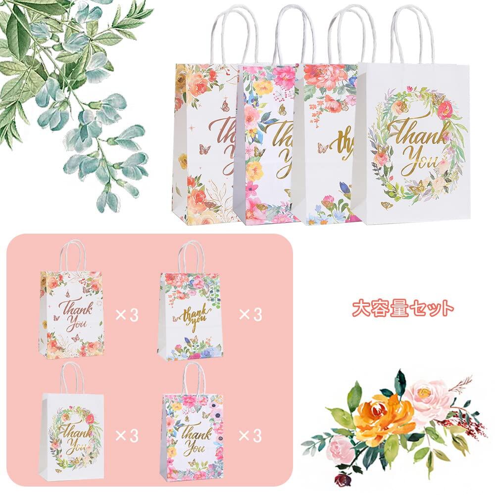 BTtime 紙袋 12枚入 4種類手提げ袋 ラッピング袋 プレゼント袋 ギフト 袋 プレゼント 包装 小 厚手 丸紐 おしゃれ 可愛い バレンタイン 卒業 感謝 結婚祝い 21x15x8cm