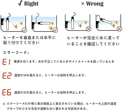 広い温度範囲:水槽ヒーターの温度は20-34℃間に調整できます。 多くの種類の水槽、魚、水陸両用のカメに適しています。操作が簡単:外部コントローラーで温度を調整するのは簡単で安全で、温度はヒーターのLED画面に表示されます。
