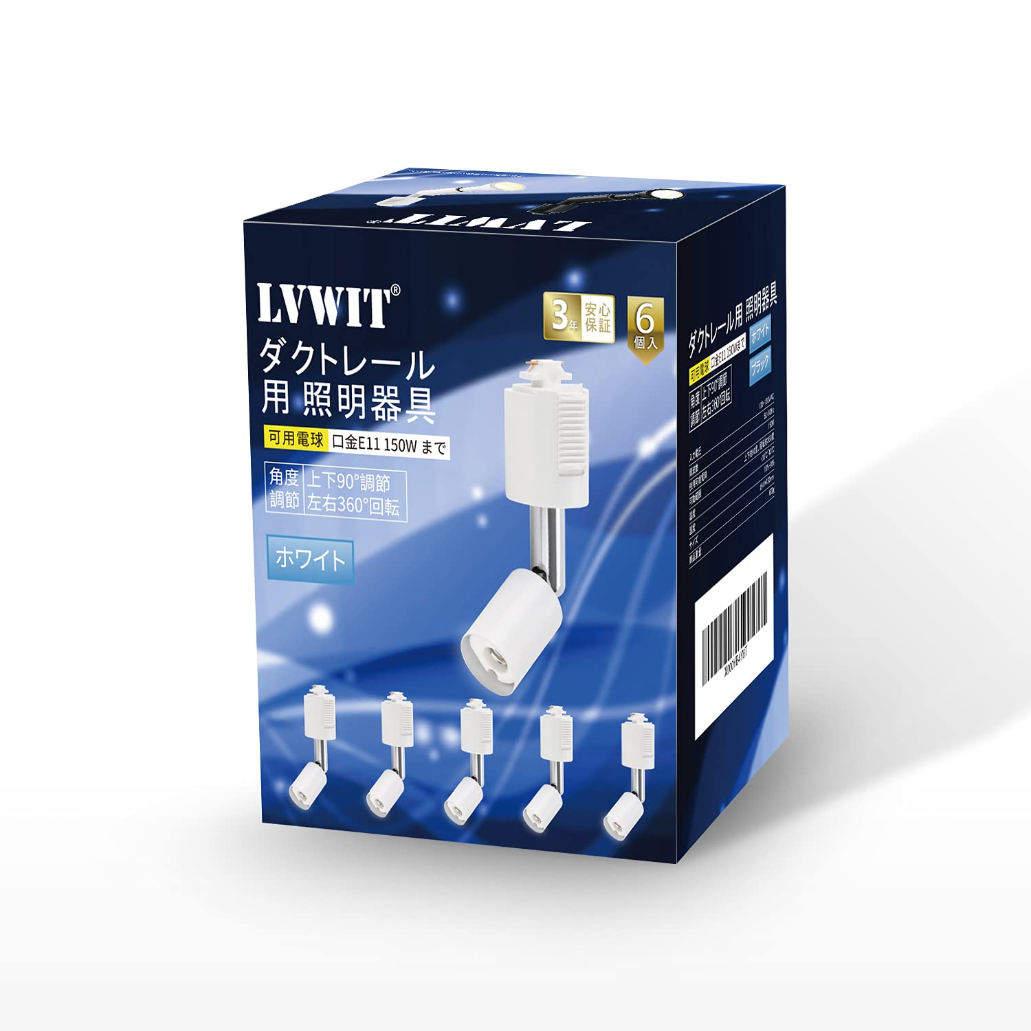 LVWIT ライティングレール用 スポットライト E11口金 ソケット ダクトレール用照明器具 角度調節可能 ホワイト 6個セット