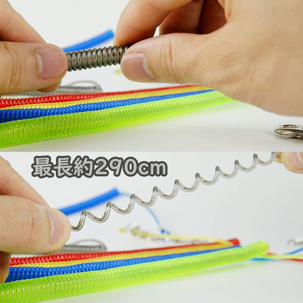 スパイラルコード:ステンレスワイヤー入りで安心強度、ナスカン付きで取り付け簡単