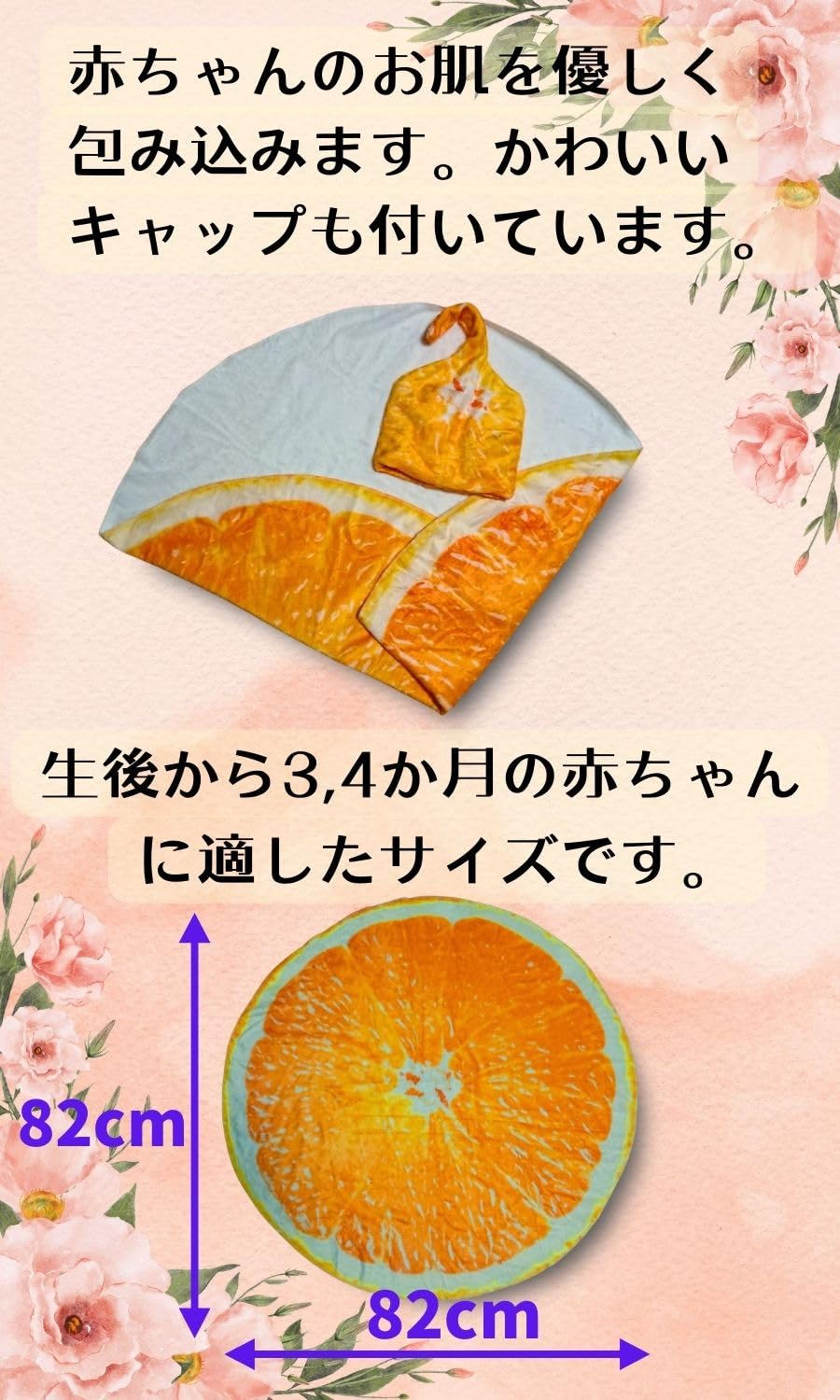 Edges42 おくるみ 新生児 野菜 夏 ガーゼ 抱っこ布団 白菜おくるみ 授乳ケープ (みかん)