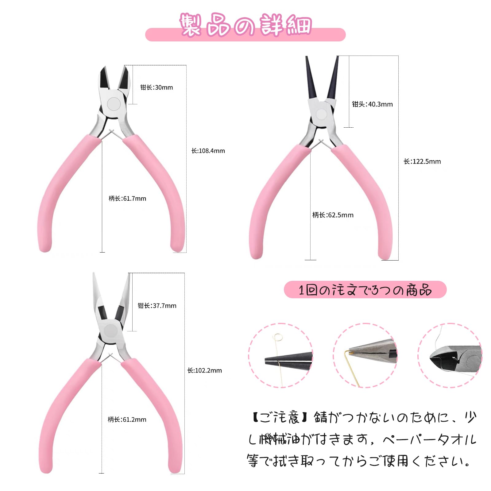 【幅広い用途】アクセサリー作りなどで必須の手芸用品ペンチ3点セットです。手芸以外にも便利にお使いいただけます。 手作りのネックレスやブレスレット、アクセサリーなどの様々なハンドメイドの作品を作るためにお使いいただけます。