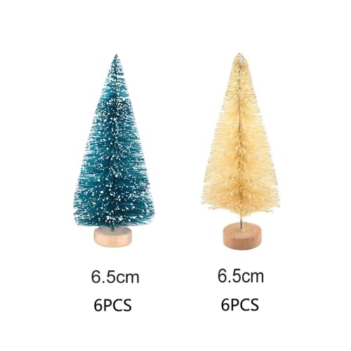 【12個セット】ミニ 卓上クリスマスツリー×12本(青緑*6本、オフホワイト*6本)、6.5cm 。お祭りの雰囲気、テーブル、工芸展示、ショーウインドーなども撮影のための置物にすることができます。