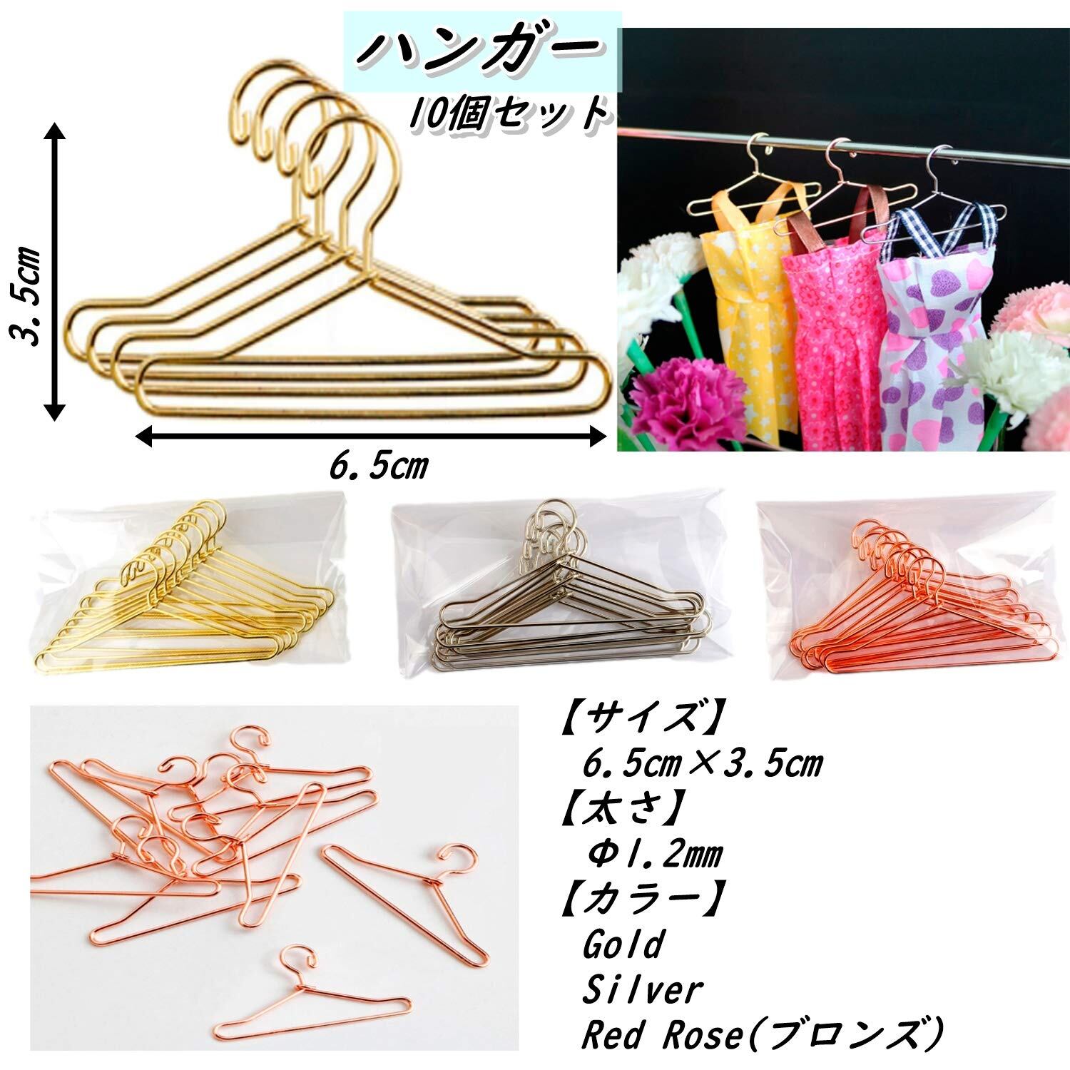 【サイズ】ハンガーラック:21×25㎝ Φ5㎜ ミニハンガー:6.5×3.5㎝ Φ1.2㎜ 【カラー】ゴールド・シルバー・ローズゴールド(ブロンズ)※お使いのモニターにより若干色の誤差がございます。