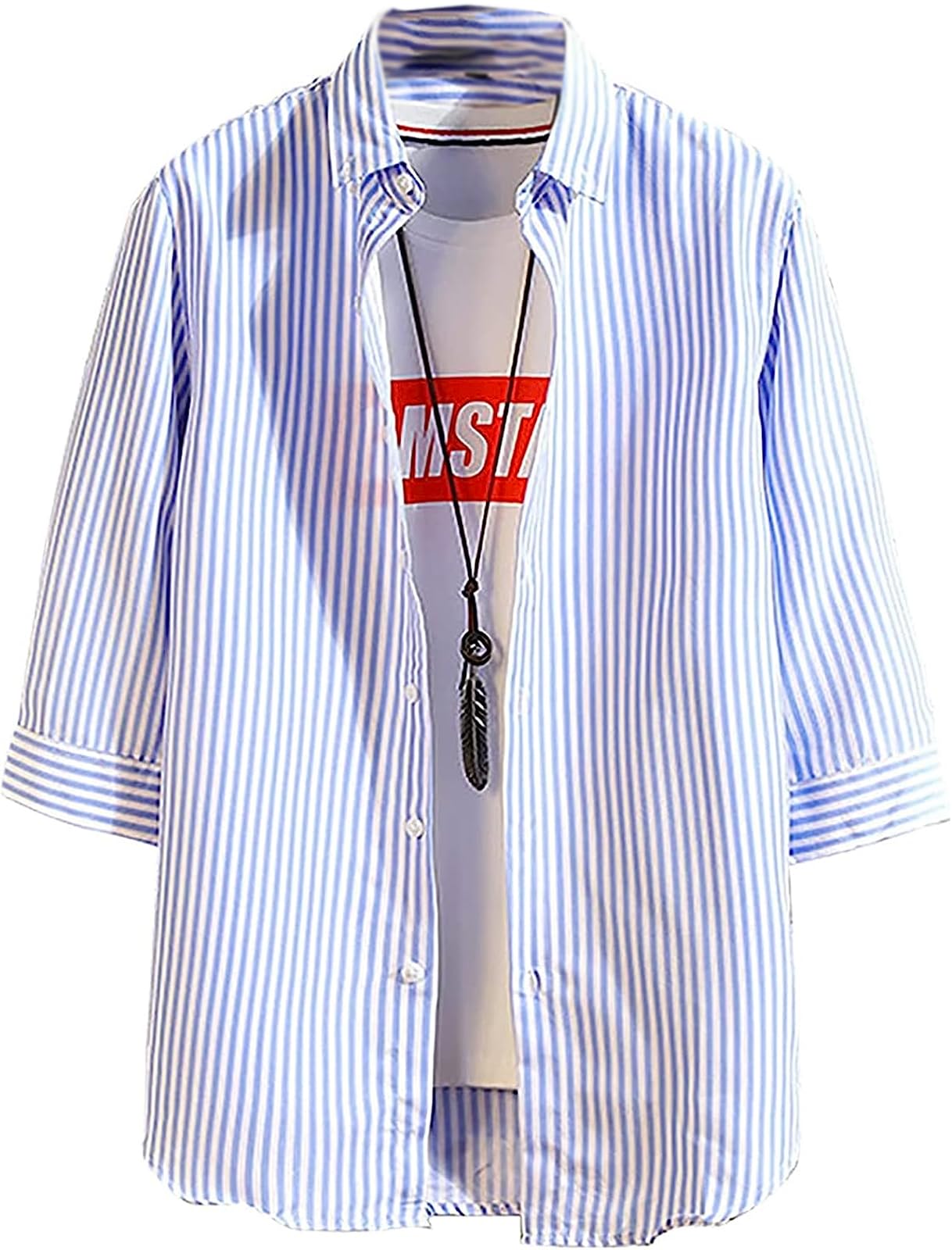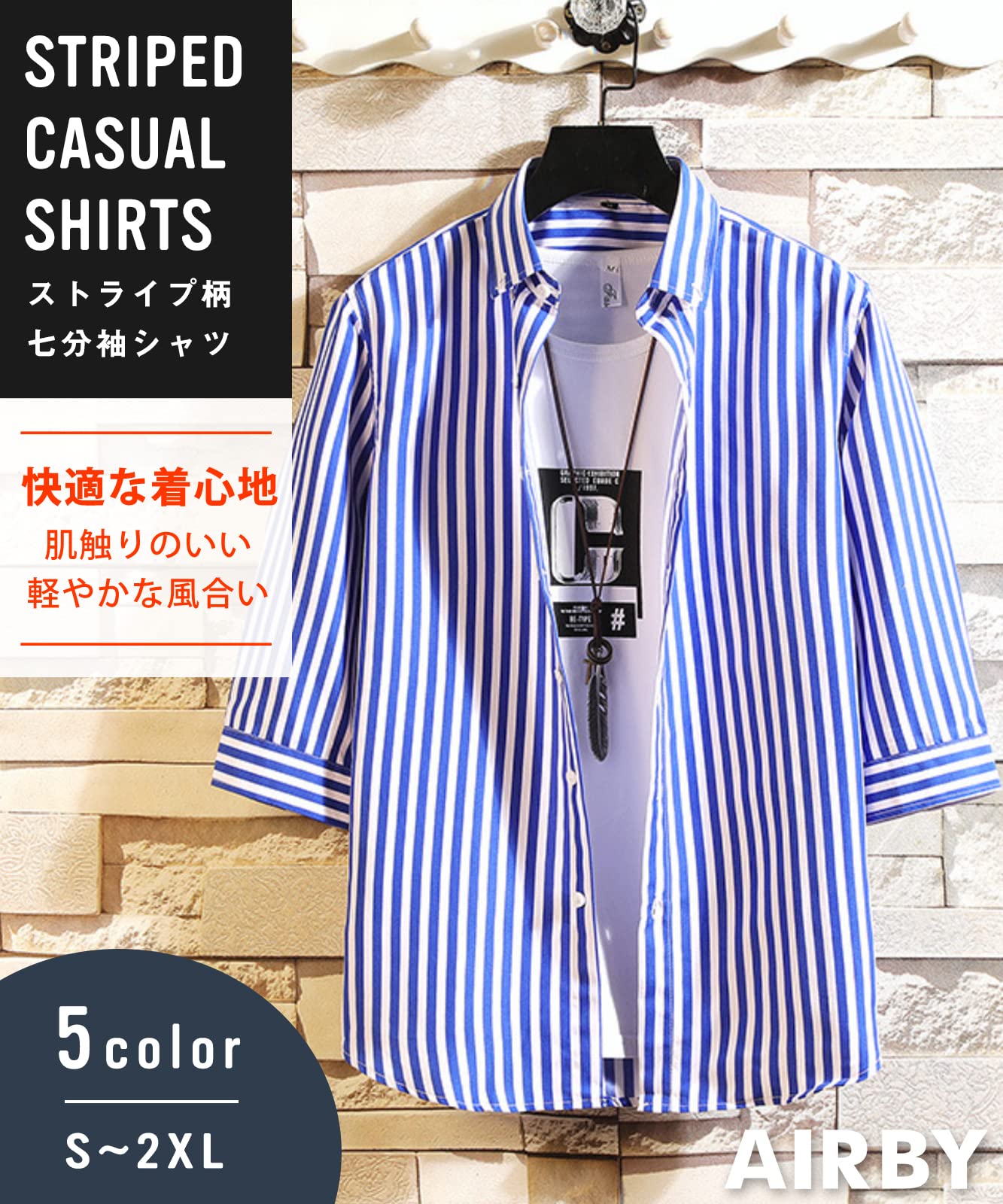 【新春セール】[エアバイ] 5色展開 七分袖 ストライプ 半袖 シャツ メンズ S〜2XL