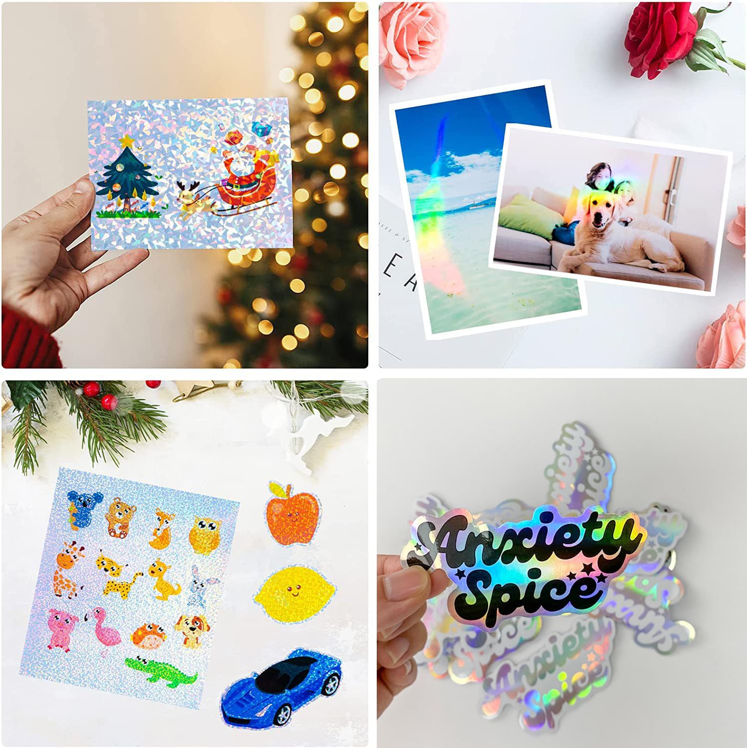 特徴:美しいホログラム効果があり、光や角度によって色が変わります。ライトおよび日光で美しく、魅力的に見ます。印刷できるタイプで、インクジェットも レーザープリンターも兼用なので、使いやすいです。光を反射すると印刷したイラストが強調され、とてもカワイイです!きれいな光沢があり、粘着性もあり、簡単にDIYできます。とても便利です。