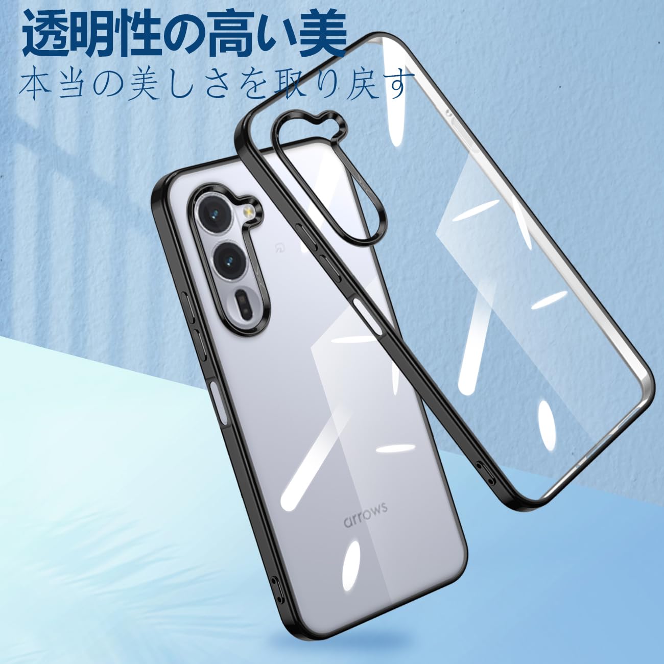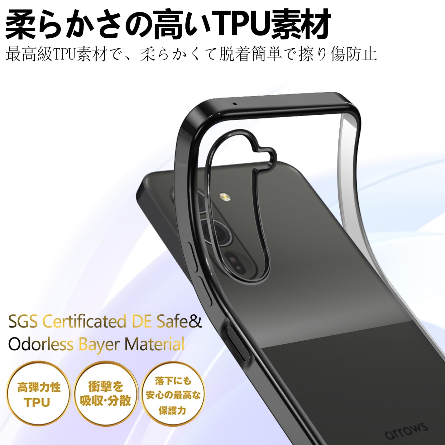 arrows Alpha F-51F ケース クリア カバー スマホケース カバー 耐衝撃 可愛い 透明 ソフト ワイヤレス充電対応 カメラ保護 黄変なし 米軍MIL規格取得 ストラップホール付き(ブラック)
