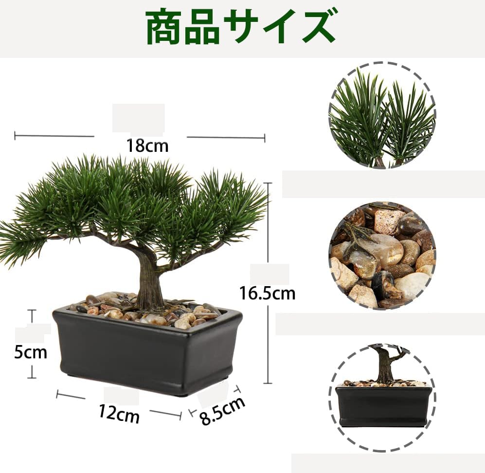 Villa Como フェイクグリーン 盆栽 ミニ インテリアグリーン 人工 観葉植物 卓上 鉢植えの樹木 枯れない 造花 テーブルデコレーション 室内 父の日ギフト (16CM 松)