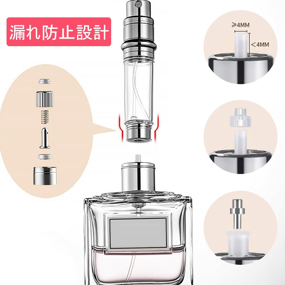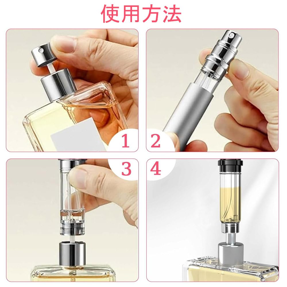 【注意事項】香水のノズルのタイプについて:直/円柱状は詰め替えできます。ご注意:ホーン状/きのこ状/傘状など、詰め替えができません。1、香水キャップが取り外せるもの;2、香水のノズルの直径が2-5mm範囲内であるまの、長さの範囲が4mm以上。繰返し充填できる密封構造。