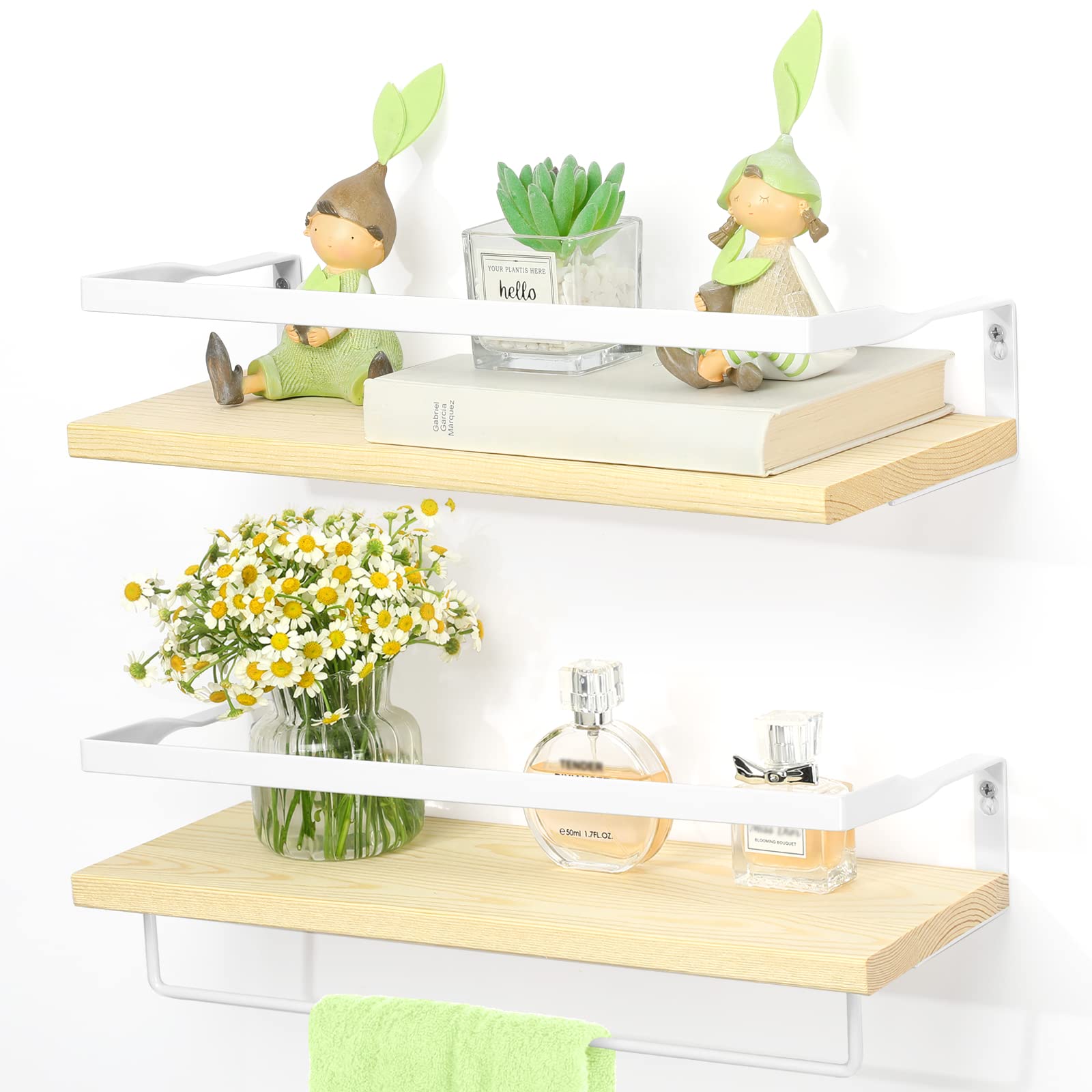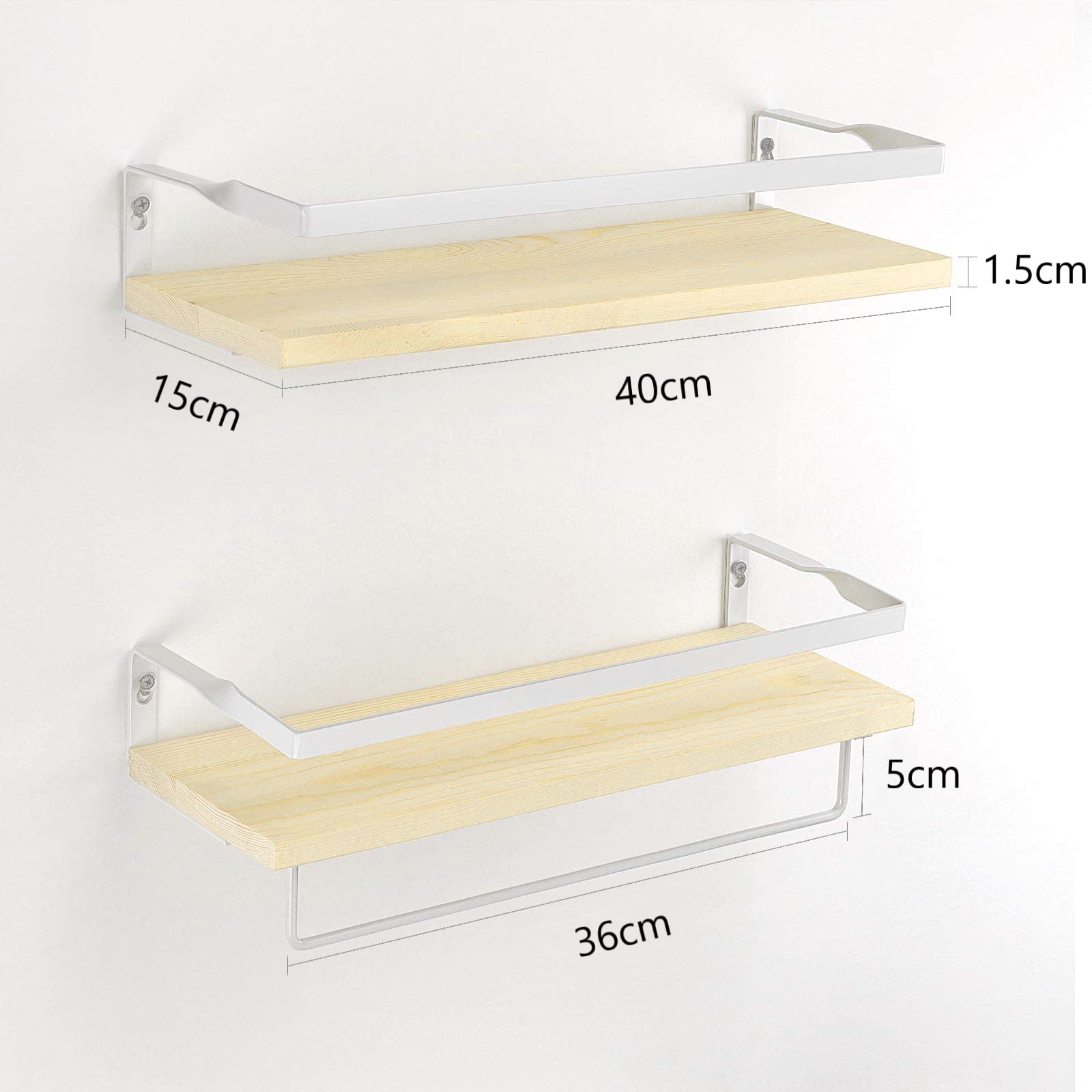 ウォールシェルフ 取り付け簡単 壁掛け棚 壁 棚 おしゃれ 木製 飾り棚 2個セット 壁掛けラック ウォールラック 壁面収納 棚 洗面所/キッチン/寝室/トイレ 壁取り付け棚 タオル掛け付き(ナチュラル)
