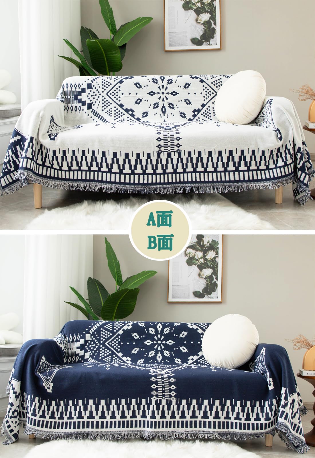 マルチカバー 北欧風 ソファカバー 長方形 ブランケット キャンプ フリンジ付き 綿 1 2 3人掛け カウチ ベッドカバー カーペット テーブルクロス リバーシブル 汚れ防止 犬猫傷 防止 防塵 四季通用 大判 洗える