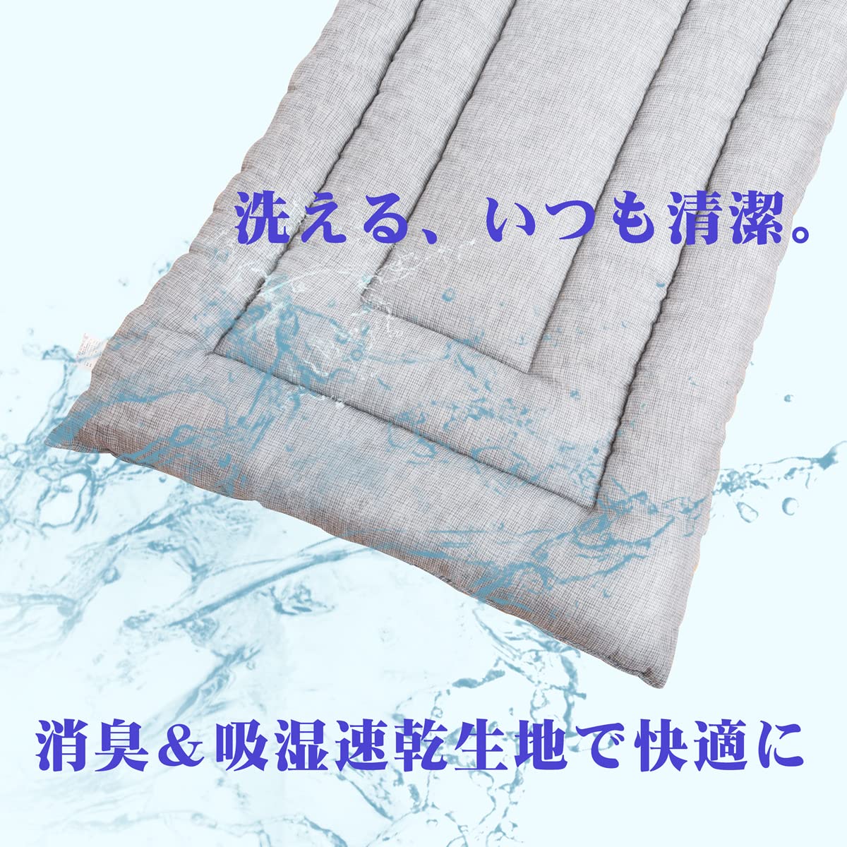 【清潔&超軽量】防ダニ・抗菌防臭性のある高機能ポリエステルわたを採用し、清潔が維持されます。防ダニ加工も施されているため、敏感肌の方でも安心してお使いいただけます。また、軽量サイズと特殊加工の軽量繊維を採用し、こちらの敷布団はわずか1.5kg!女性一人でも、片付けが簡単にできます。毎日出し入れしてもラクラク!さらに、超軽量タイプなのに厚みがしっかりしているため、床つき感軽減でボリューム感たっぷり。