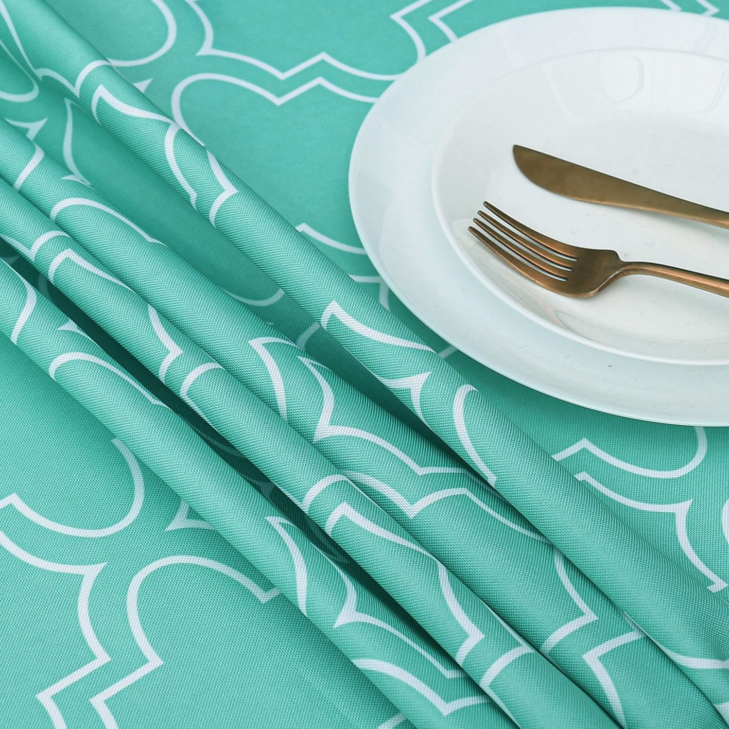 AooHome 円形 テーブルクロス ラウンドグロス テーブルカバー 撥水加工 北欧 汚れ防止 お手入れ簡単 グリーン 洗える 150cm直径 丸型