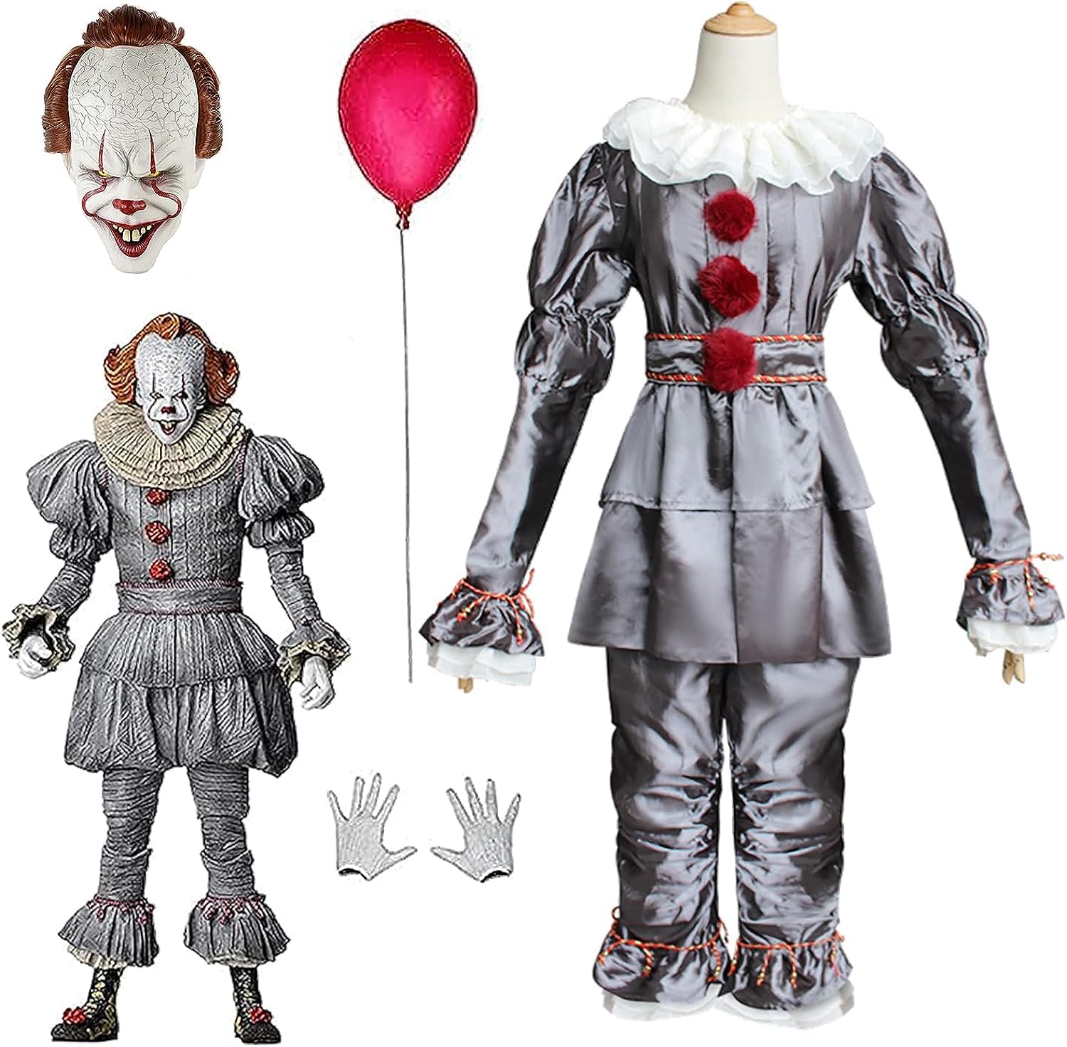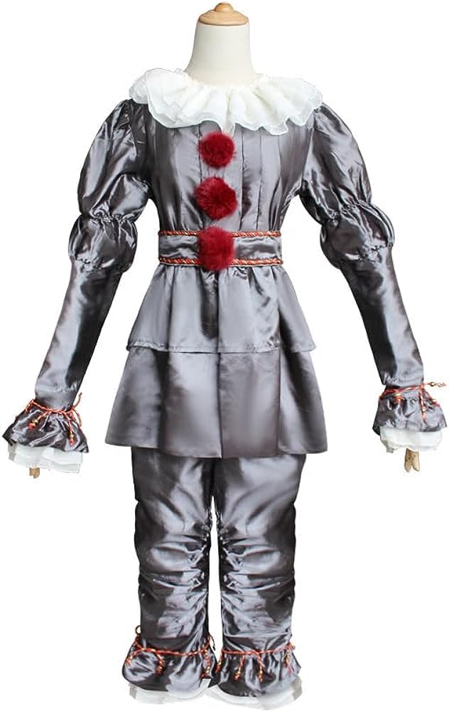 [BIVVI] ペニーワイズ Pennywise ピエロ コスプレ 衣装 ジョーカー ハロウィン コスチューム 道化師 舞踏会 学園祭 仮装 男女共用 9点セット (シルバー S)